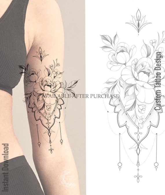 Tattoo Design Peonies Forget Me Not Flowers Jewellery Etsy